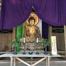 中を見ると、金色の大仏が鎮座していました。