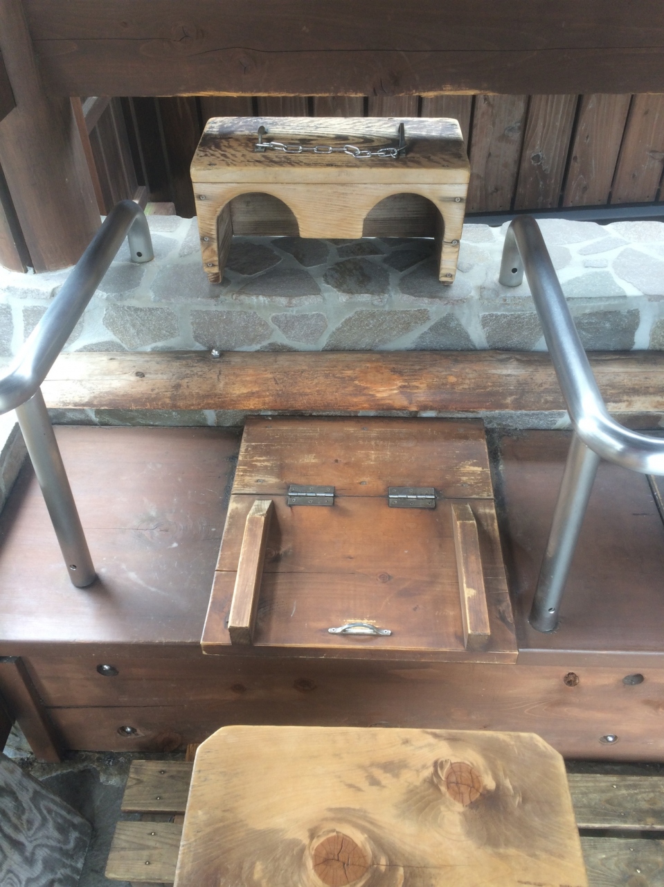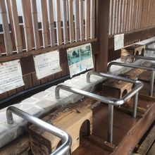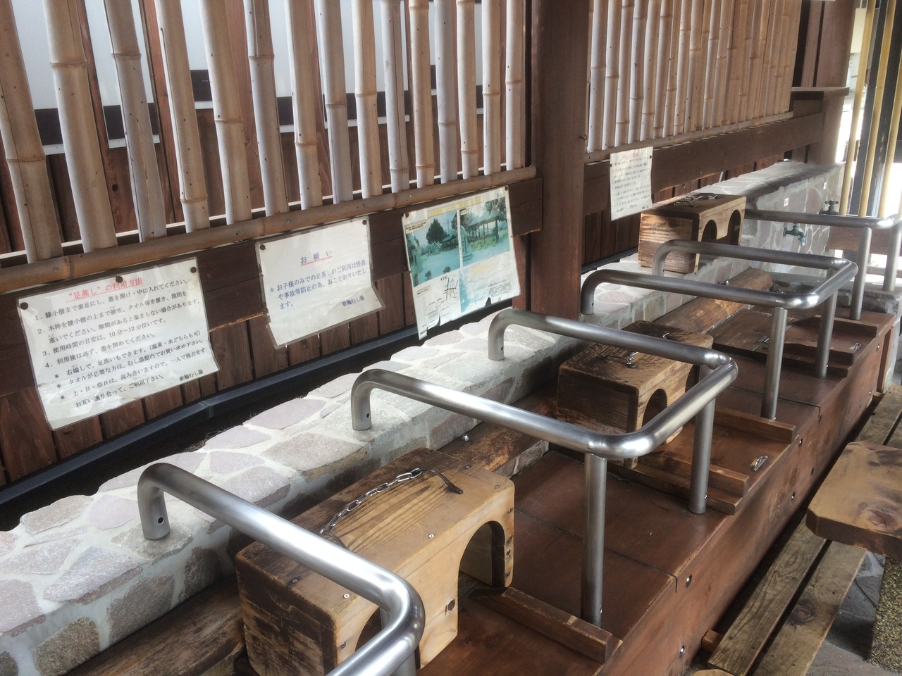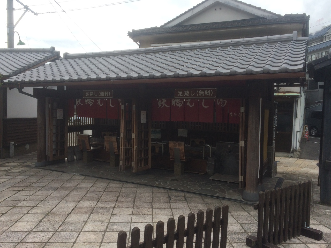 鉄輪むし湯の横に無料で屋根付きの足蒸しがあり、4つの椅子があり足を入れフタをすると温泉の蒸気で足が温まり少し汗ばんできました。4つとも下部が繋がっているため、誰かがフタを開けると蒸気が逃げてしまいます。広場