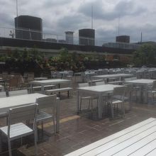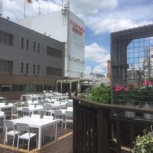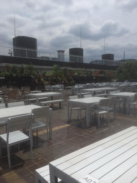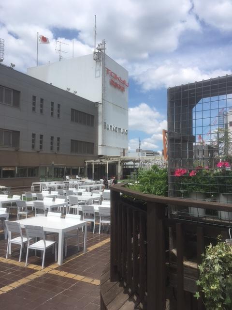 この日は地下で昼食を購入し、7階にある書店で書籍を購入してから屋上に行きました。東急百貨店での私のルーティンです。私のお勧めは何といっても屋上です。遮るもののない空の一隅に写真のような緑が見られます。ここのテーブルで昼食をとります。昼時であっても週日ならばとても空いています。