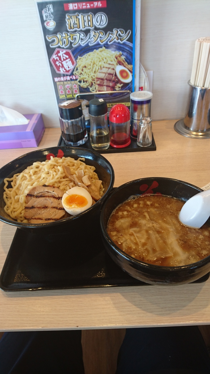 今回、つけ麺を食べたのですが、魚介系のスープとワンタンと麺が渾然一体となりおいしかったです。特にスープにうまさを感じました。