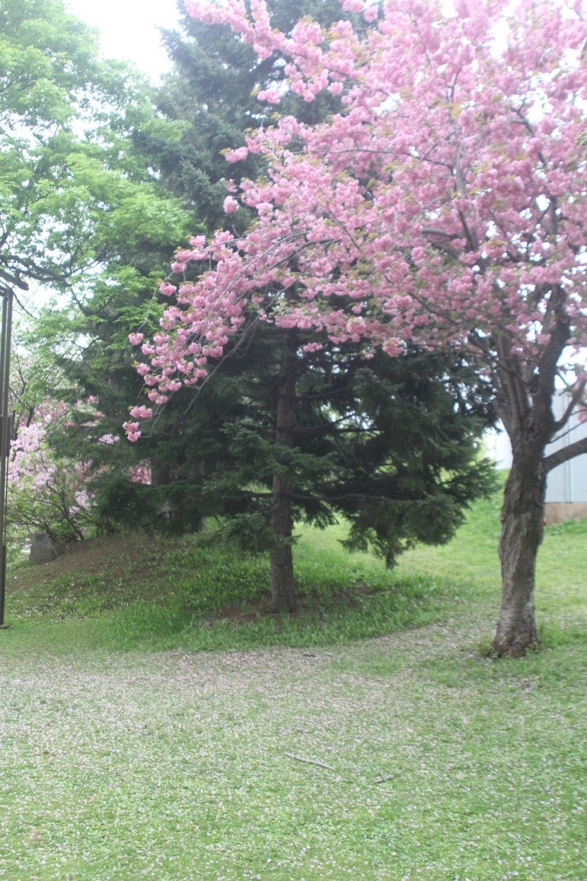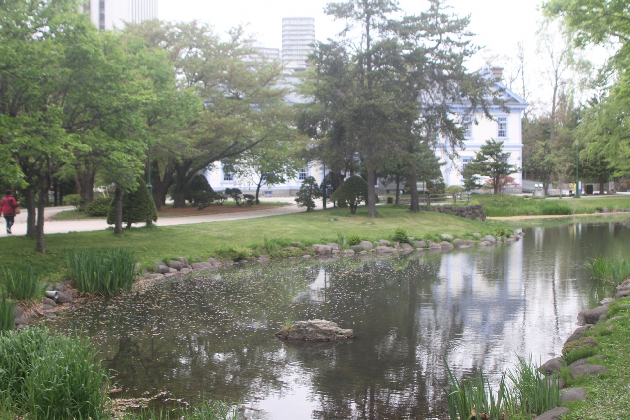 ちょうど、中島公園内の八重桜が散り始めた頃に立ち寄りました。