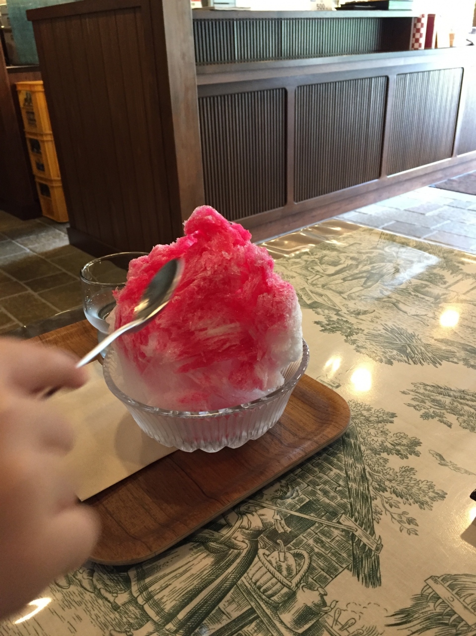 隣におまんじゅうを作っているところがあり、見ながら喫茶も楽しめます。店内は小さめですが、湯巡りの途中の休憩にはちょうどよいです。この日はかき氷もいただきました。季節を感じられ、店内から外を眺めて旅行に来ている人たちを見るのは楽しい。
