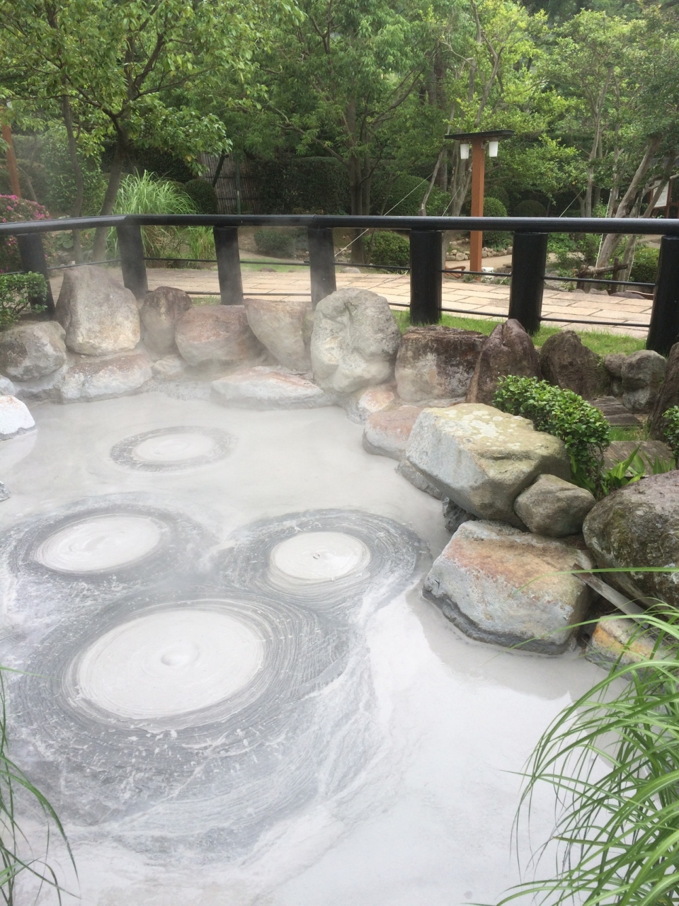 7つの地獄巡りの中では一番落ち着いた雰囲気の場所でした。泥の湯からボコボコと温泉が湧き出ているヶ所が何箇所かあり一番奥には椅子があり池から出ている湯を見ることが出来ます。庭園のような地獄で静かな感じの場所でした。
