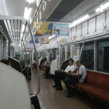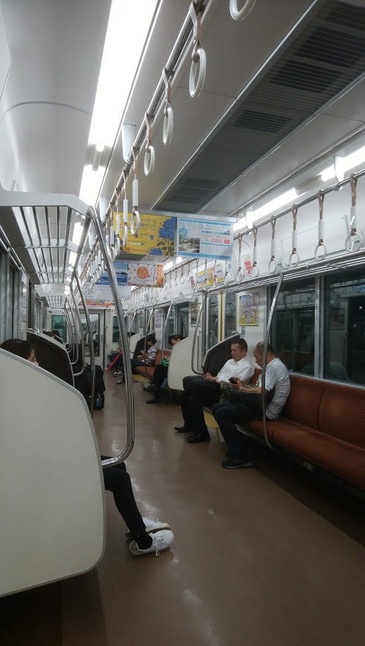 日曜日の午前中に関西空港駅から難波駅まで南海電鉄の特急ラピートを乗るために、成田から関空までの飛行機内で割引切符を購入しましたが、満席のため予定の列車に乗ることが出来ずにかわりにこちらの列車を乗りました。座席は普通の通勤型のロングシートで、空港で乗車した時は空席がありましたが、基本的には大阪圏の都市鉄道なので難波に近づいていくと混んできました。大きな荷物をもっての利用は時間帯によっては注意が必要だと思います。