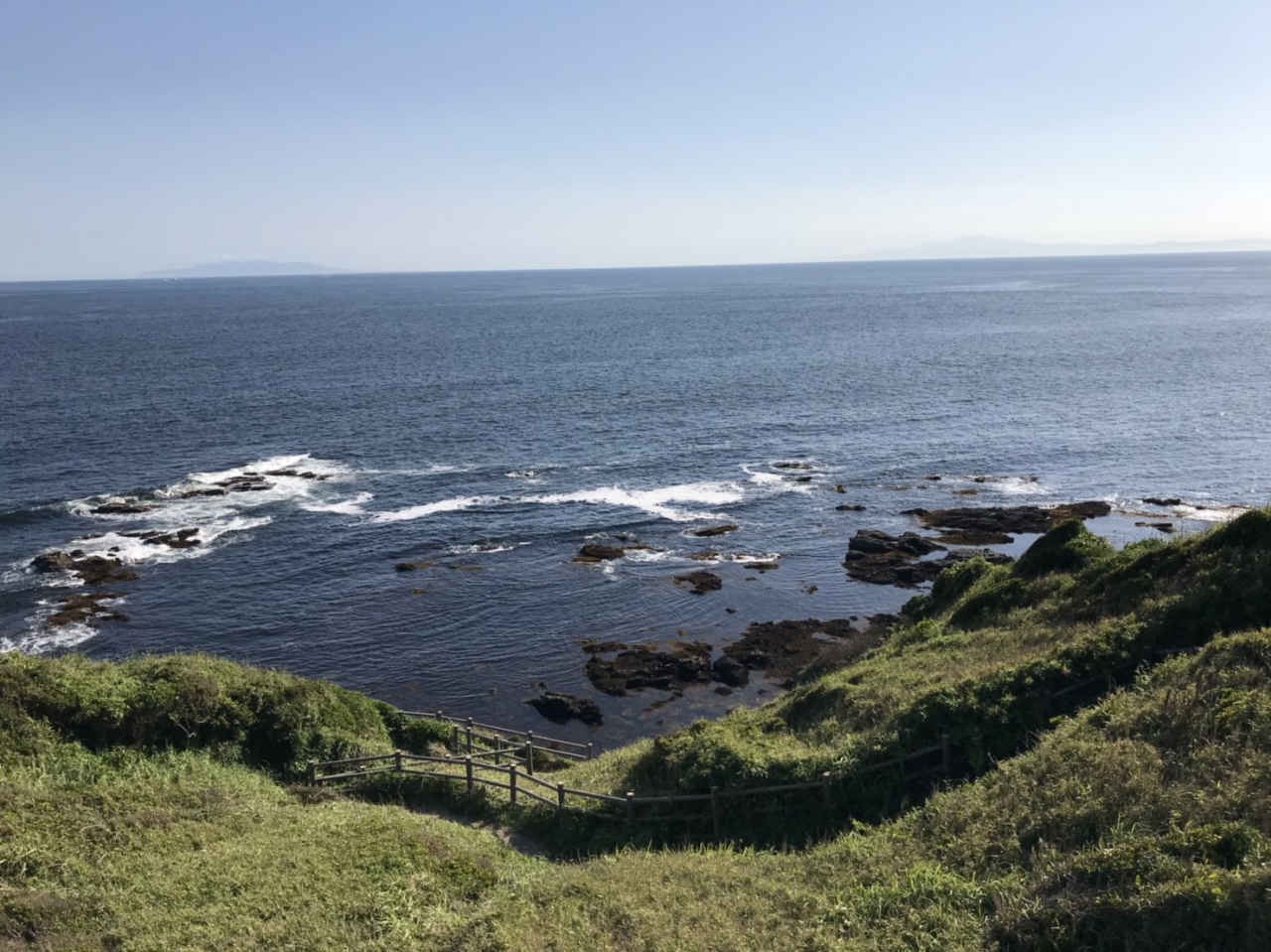 じっくり歩き回ったり、広場をのんびりするのには最適な場所です。展望台からは相模湾や宮川公園の風車などが一望できます。緑がたくさんの公園敷地内のみならず、急な階段を下りて岩場に出ることができます。夏になると磯遊びや磯釣りを楽しむ人たちが多くいます。