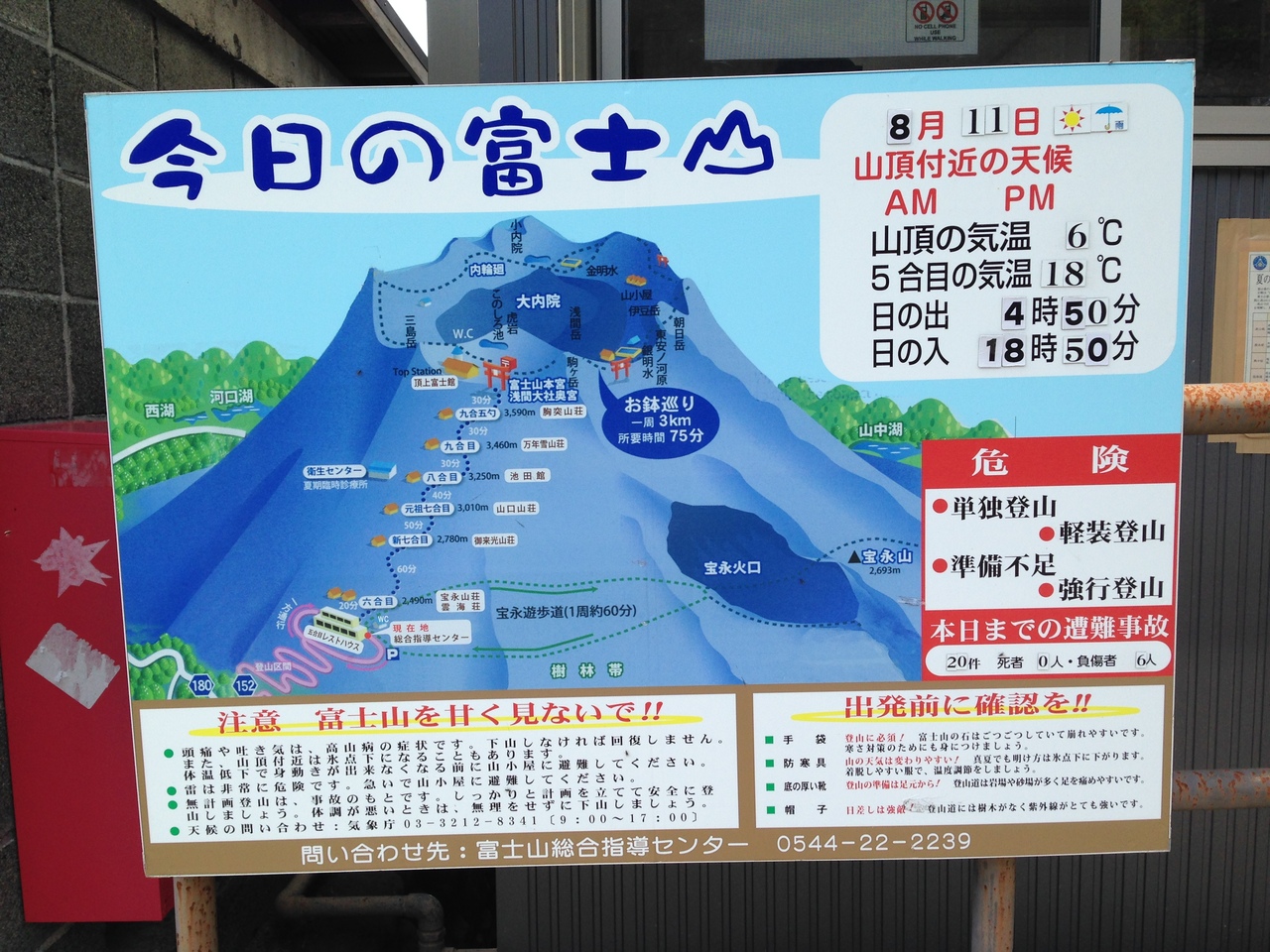 富士宮口五合目は標高2390m。富士山剣ヶ峰(最高峰)への最短ルート。