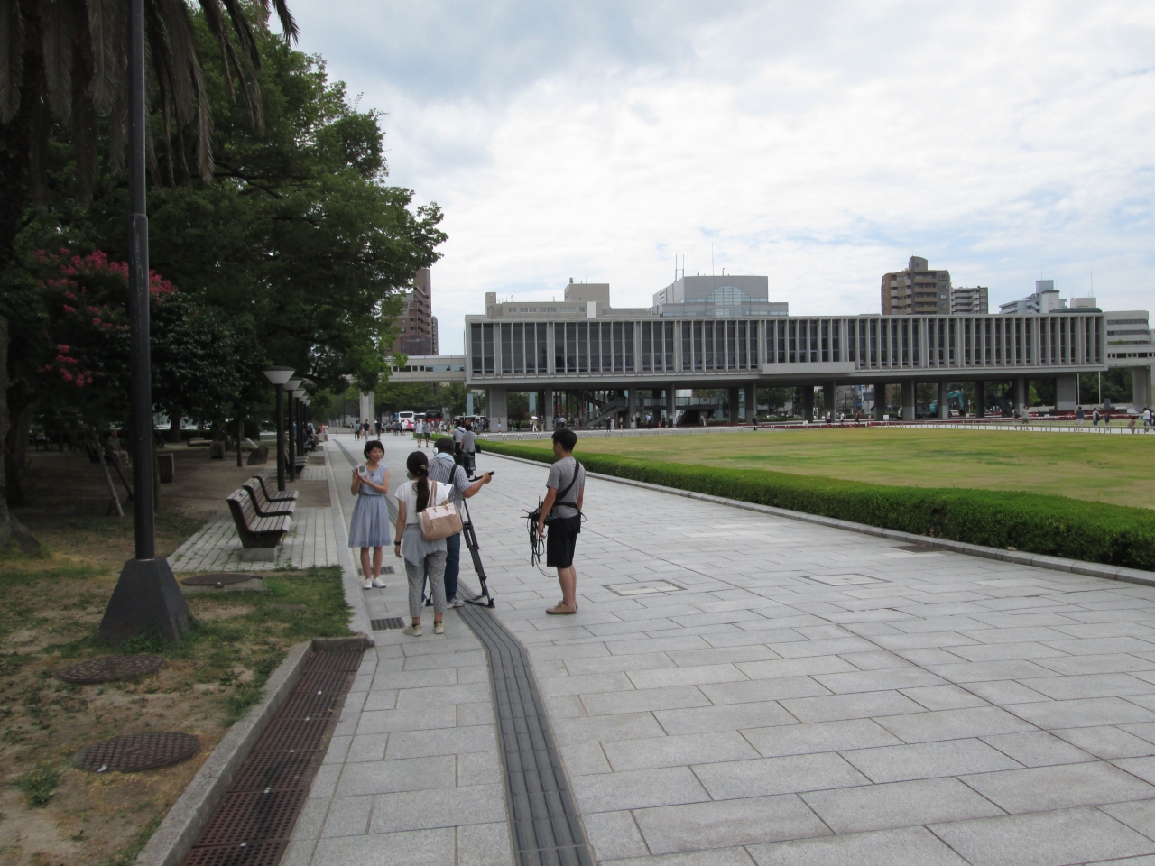 平和記念公園を散策していると報道番組と思われる撮影が行われていました。ここに来て公園内にある30以上もある像や記念碑を見ると、つねに平和のことを考えさせられるので、報道番組もひとつひとつの見学ポイントを説明・解説しているようでした。