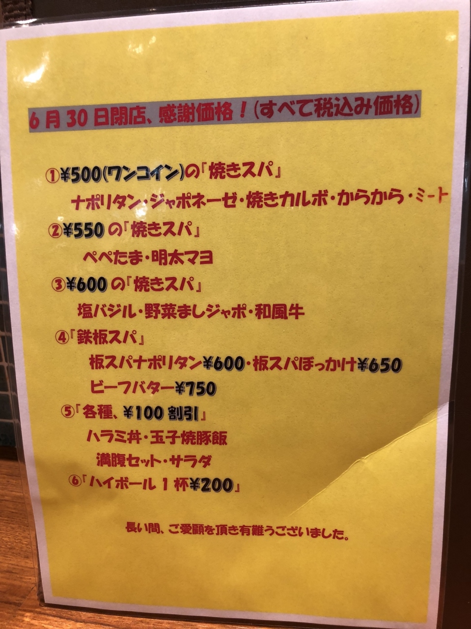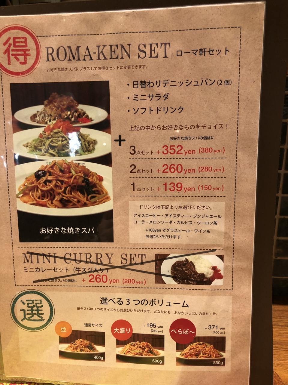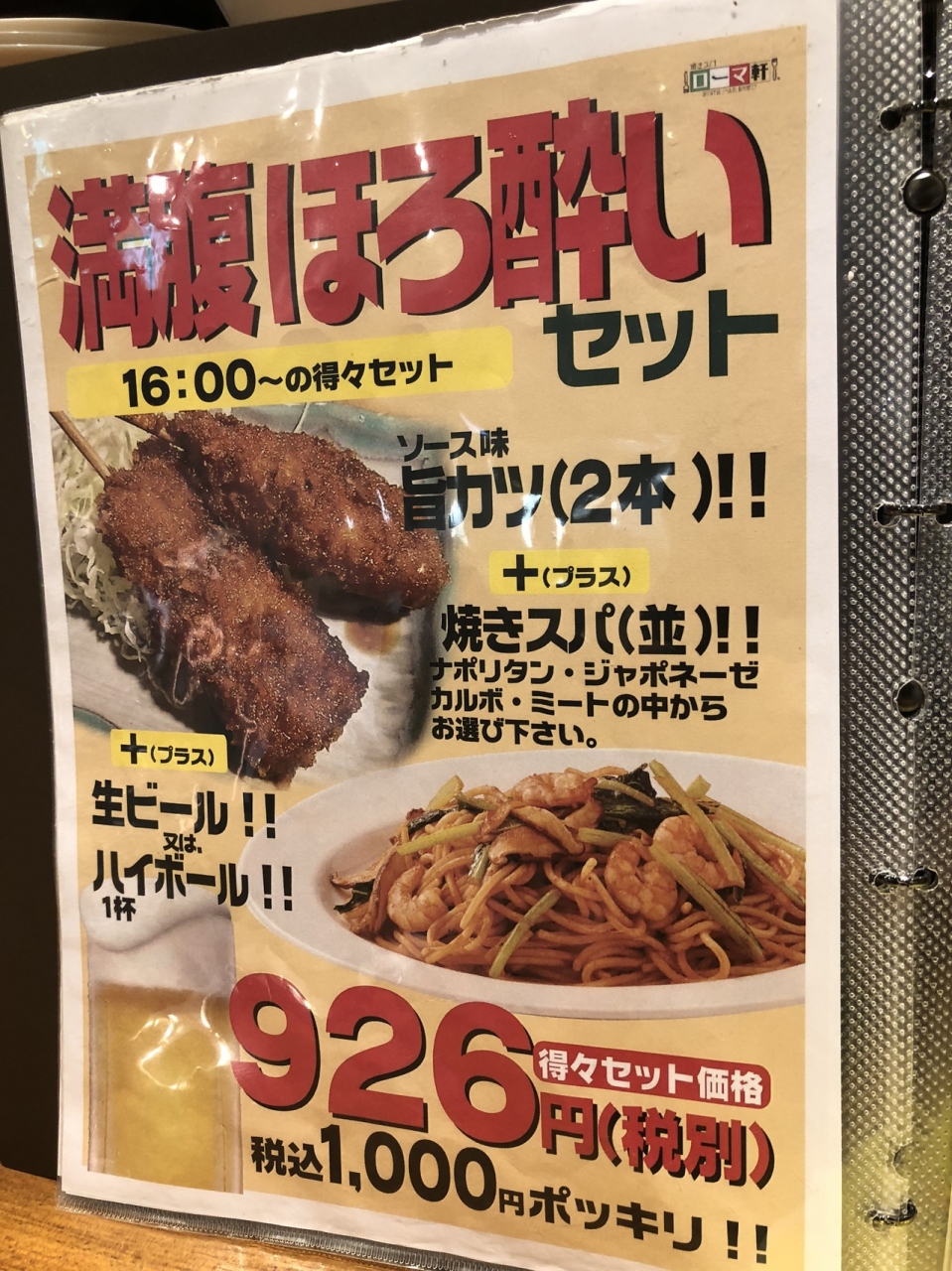 ローマ軒は、大阪市下に数店舗あり、新しいお店はバル形態のようだ。この店舗は、まもなく閉店するそう。残念である。