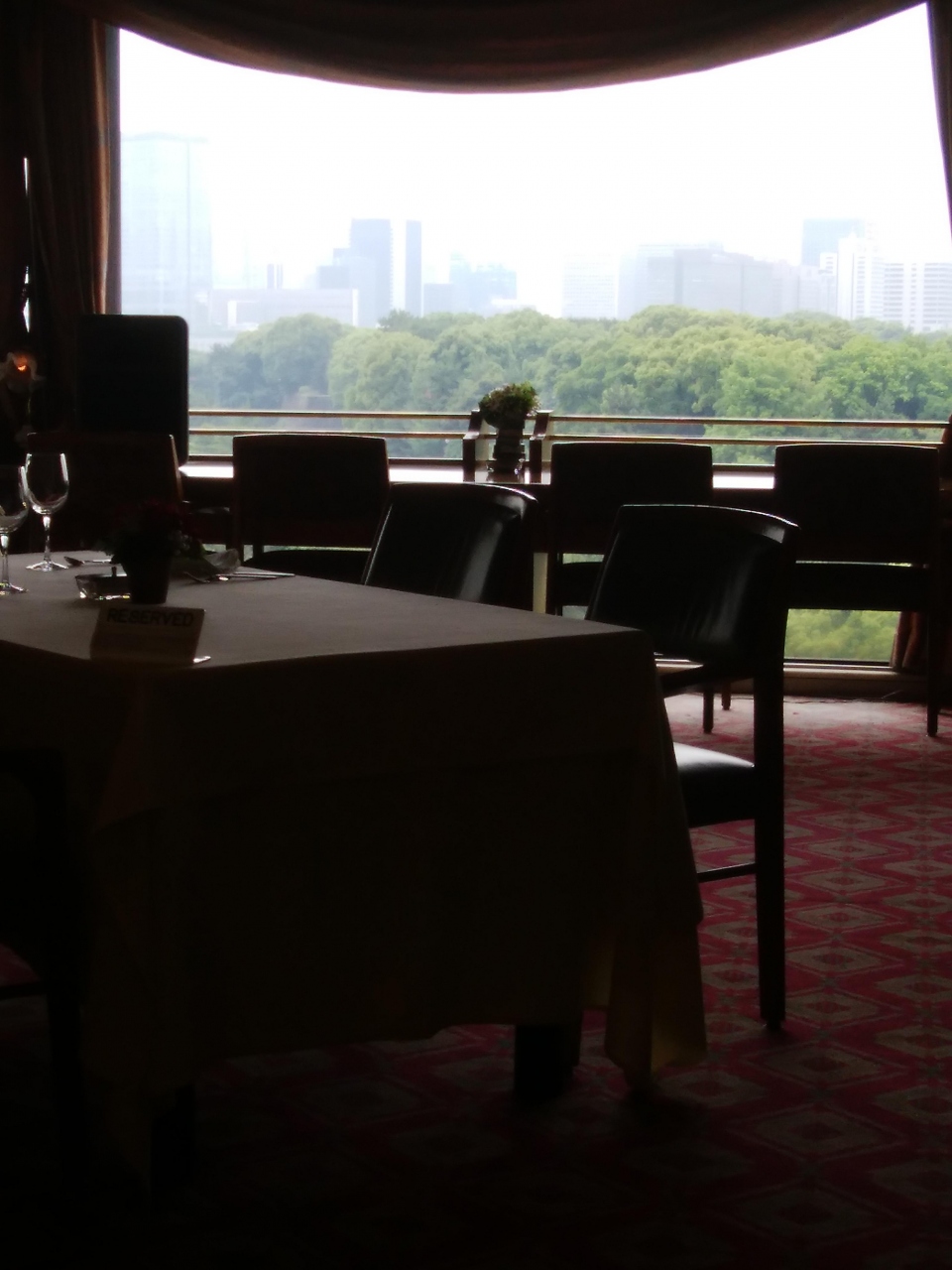友人と竹橋パレスサイドビル9階にあるレストランアラスカでランチ。口コミで見た御馳走パレスランチ1500円を注文。他のランチメニューは3000円以上するが、かなりお得。店内は品のよい女性で満席であった。メインに加え、デザートの桃のタルトとフルーツシャーベットも頂け、皇居東御苑を望みながら優雅なランチタイムを過ごせた。