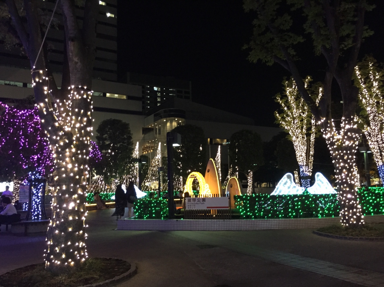 珍しく大宮駅西口・鐘塚公園でのイルミネーションが行われていました。