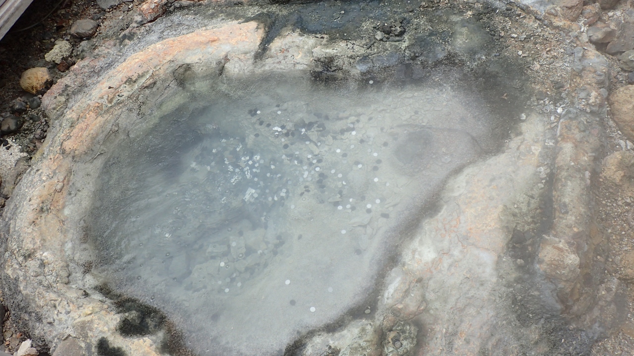 ただ眺めるだけでなく、中心部の間欠泉、鉄泉池まで遊歩道が整備されており、景色と硫化水素臭を楽しみながら(笑)散策できるのがとても良かった。