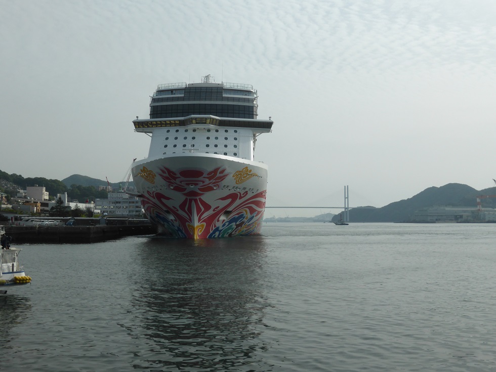 ここは市内を行き先別に区切った中で長崎県美術館や長崎水辺の森公園を経て賑やかな太古の音色が聞こえてきましたのでそちらへ向かって進むととても大きなフェエリーが出港しておりその見送りの催しがされているところでした。