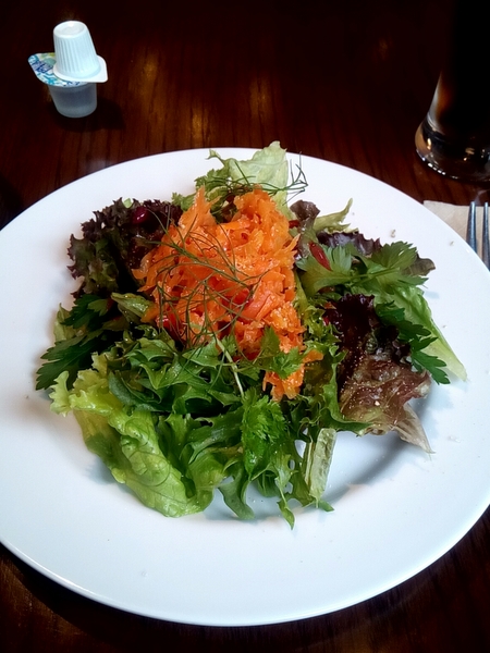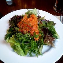 サラダはベリー系のドレッシングがかかった、キャロットラペが乗ったサラダで量も多く満足。