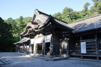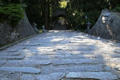 自然石の長い石畳の参道を歩き、急峻な石段を上り切ると壮大な権現造りの社殿が現れます。