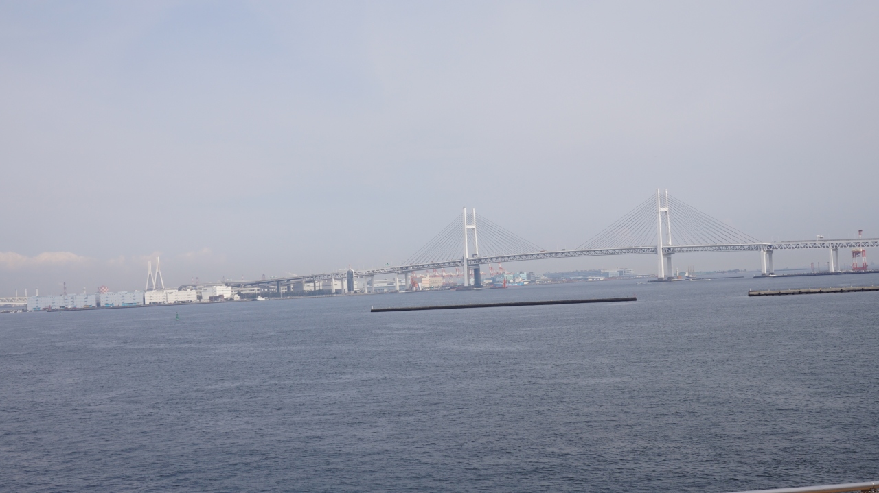 わたしのオススメは大桟橋から見ることです。目の前に海が広がっていて、その奥に優雅な橋・・・とても写真映えします。
