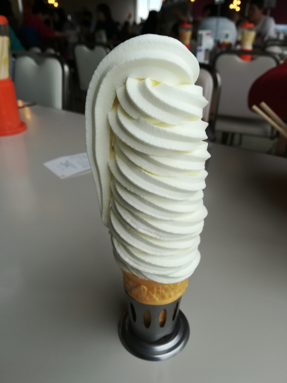 ソフトクリームは安くて大きいです。たった180円で10段巻き位あります。味は名古屋のスガキヤのソフトクリームとほぼ同じで、サッパリしていて美味しかったです。