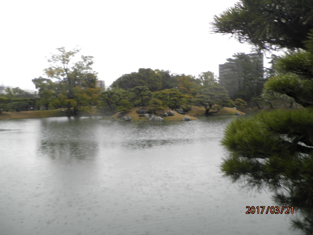 6つの池をめぐる池泉式回遊庭園の栗林公園、南庭にあります。北湖には、2つの島があり、朱塗りの梅林橋が架かっています。周囲には、たくさんの松があり、富士山を模して作られた芙蓉峰と呼ばれる築山があり、変化にとんだ庭園の景色を楽しめます。