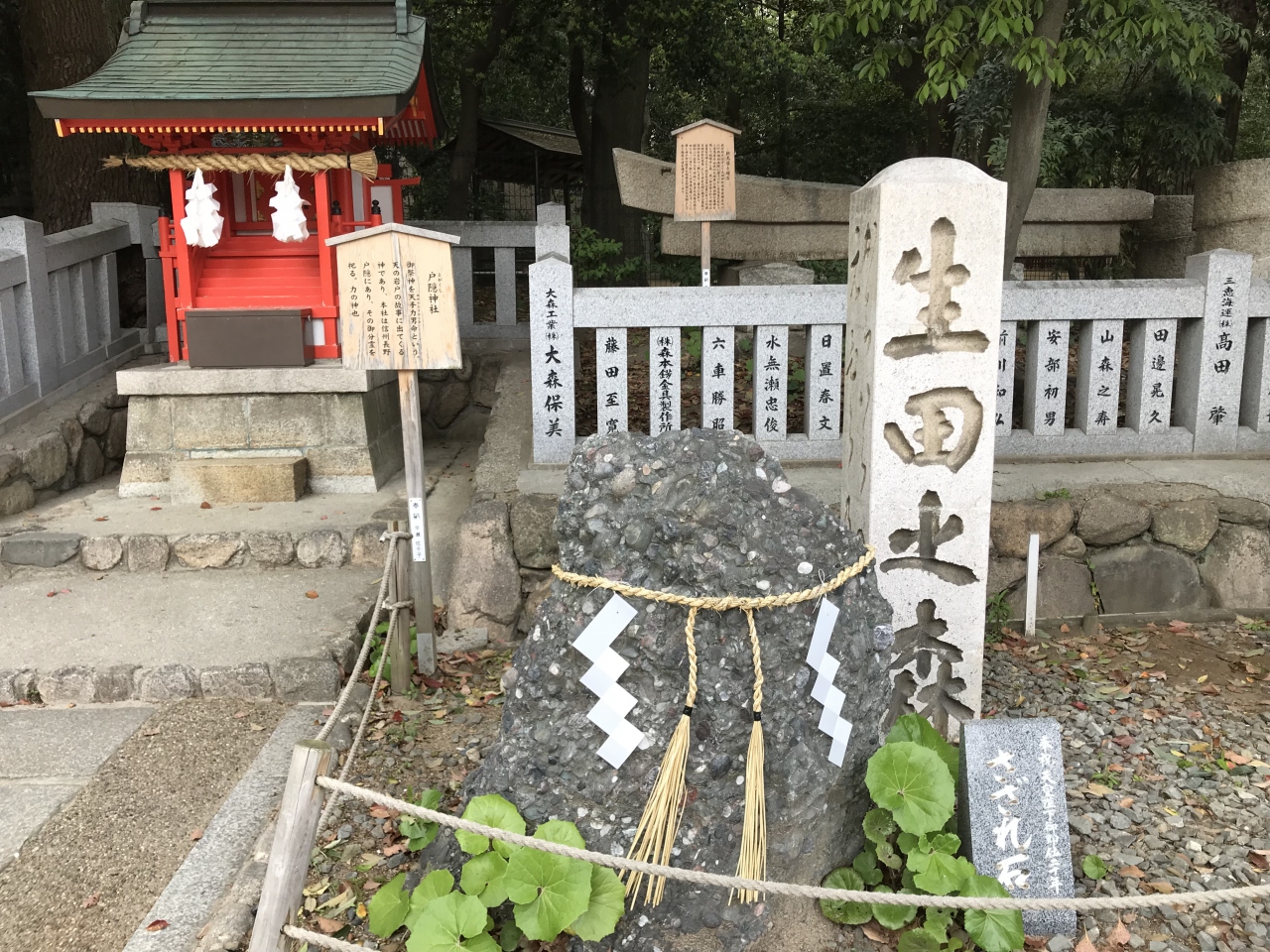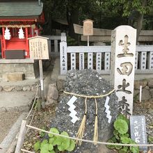 生田神社の本殿の裏のほうにある生田の森の近くにありました。それほど大きいわけではないので、気を付けてみていないと見逃しそうな感じでした。このさざれ石は君が代にでてくるあの石がこちらへ奉納されているそうです。