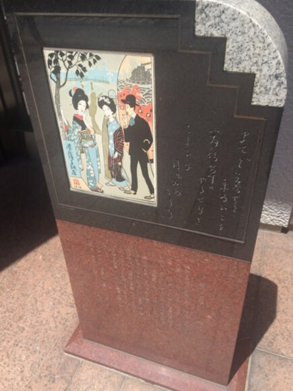 記念碑には夢二風の絵が描かれており、ハイカラな感じの画風が面白いです。