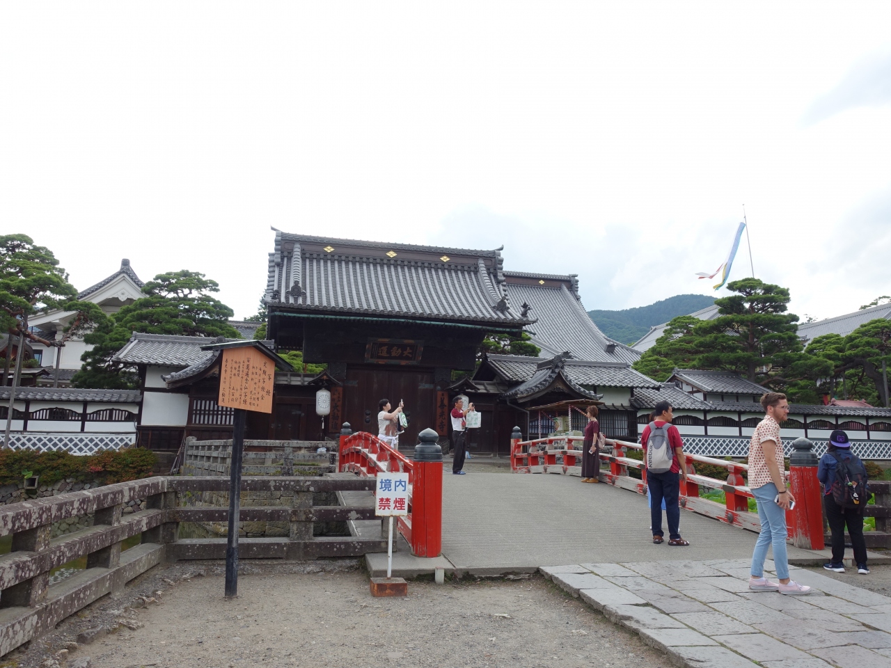「善光寺 大勧進」は、山門手前の左手にあります。大勧進の手前には放生池があり、赤い橋が架かっています。放生池には大きな蓮の葉が密集しており、これらが織りなす光景はなかなか印象深いものでした。