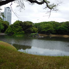 小石川後楽園の中央に位置し、庭園のシンボル的存在ともなっている大きな池です。琵琶湖を模して造られたようで、周囲を取り囲むように散策路が続いているので、いろいろな角度から眺める事が出来て良かったです。また、水鳥も飛来して来ている姿も見られました。