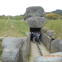 大きな石組が 地表にあり その石組の下が石室になっていて 実際に入って見ることができるようになっていますが 観光バスの団体など鉢合わせしたときなどは じっくりと見るには 少し時間がかかりますが 団体客をやり過ごして あまり混雑していない時のほうが いいようです。