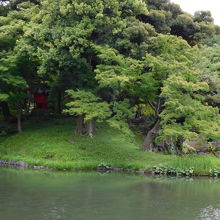 小石川後楽園の中央に位置する、琵琶湖を模して造られた「大泉水」の中程に浮かぶ大きな島で、亀の形をしています。木々が生い茂って緑豊かな島で、奥の方には弁財天様を祀った赤い祠も見えます。人が立ち入らない場所なので、とても神聖な感じがしました。
