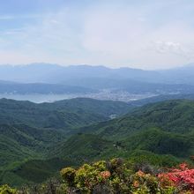 割と一気に登り切ると尾根上に出る。この尾根上の風景が素晴らしく最高峰の車山方向には眼下に湿原が広がり、別の角度では諏訪湖と麓の街並みが広がっていた。