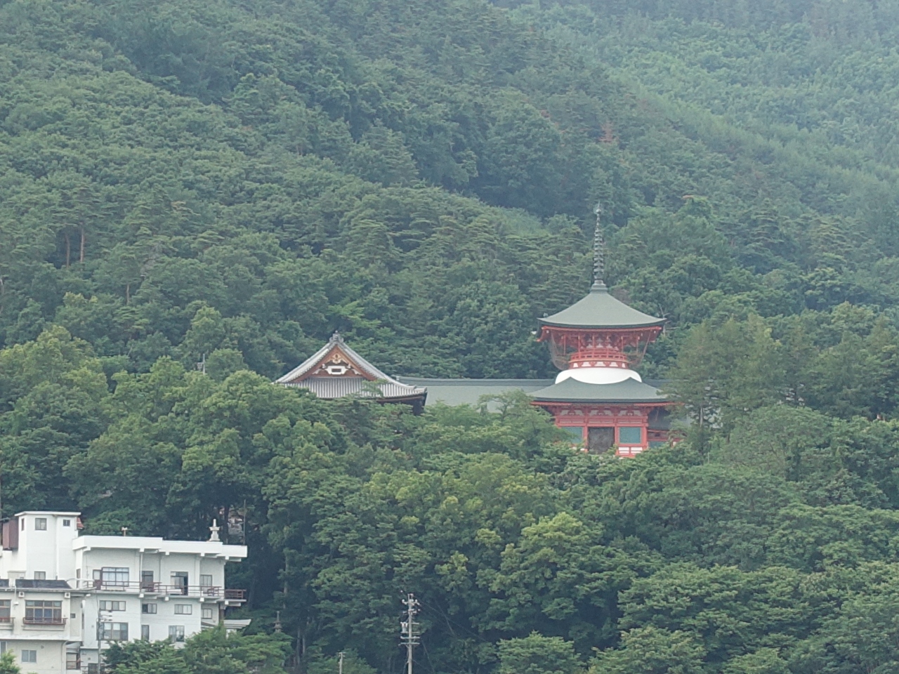 6月という事で周囲の緑は色濃く、塔の「白」と「朱」の色が際立っていました。
