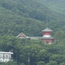 大峰山の緑の合間に姿が見えます