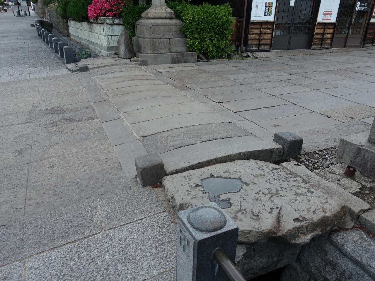 「善光寺 駒返り橋」は、仁王門をくぐり、仲見世を歩いて行くと、山門の手前にあります。橋と言っても1メートルほどの短い石の橋で、気付かないで通りすぎる人も多いと思います。