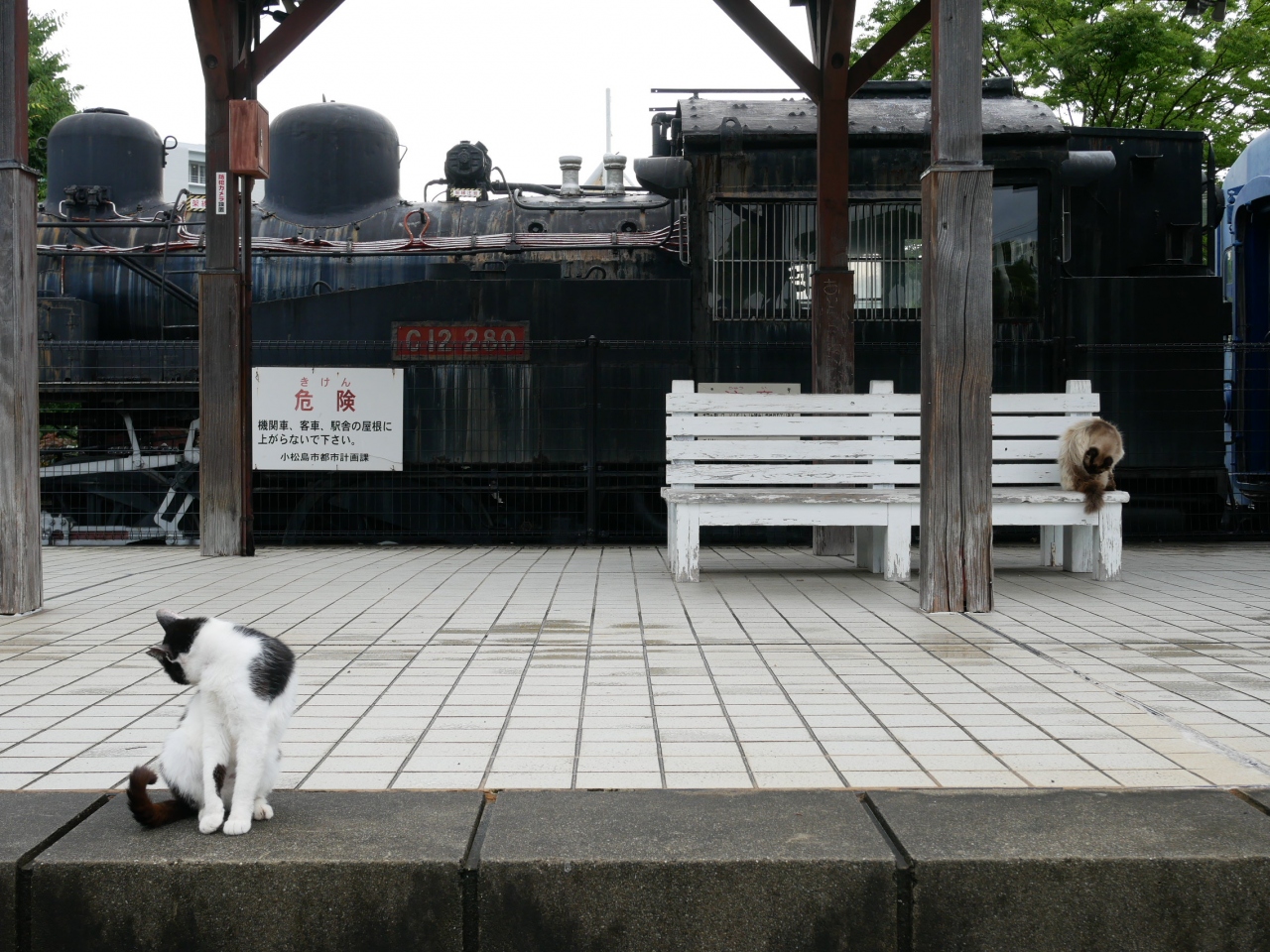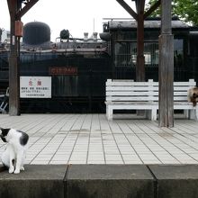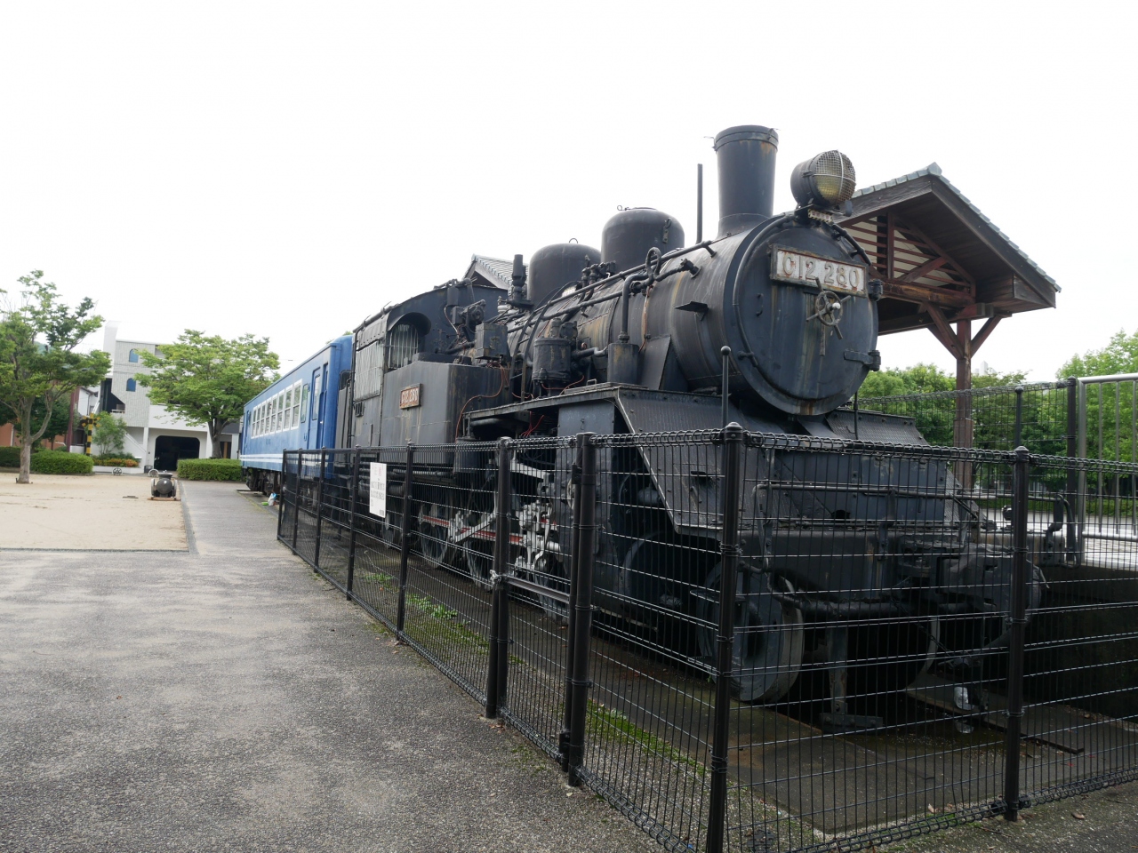 記念にホームが作られたC12と客車がボロボロの状態で保存されている