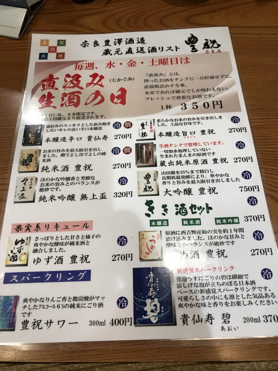 日本酒(約1合)が270円(数種類ある)からあり。