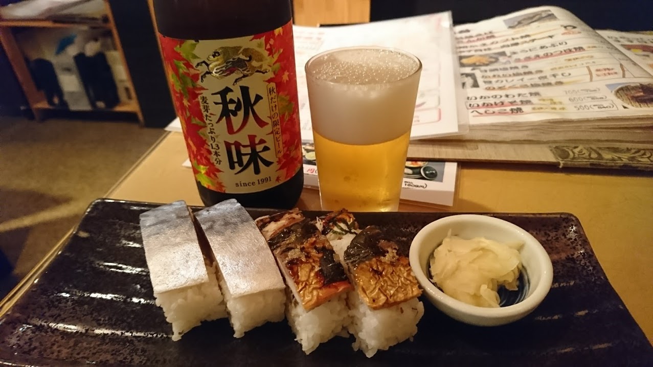 その中でも夕方前の時間帯で営業されていた まるさん屋さんは鯖の押し寿司や刺身盛りが食べれます。