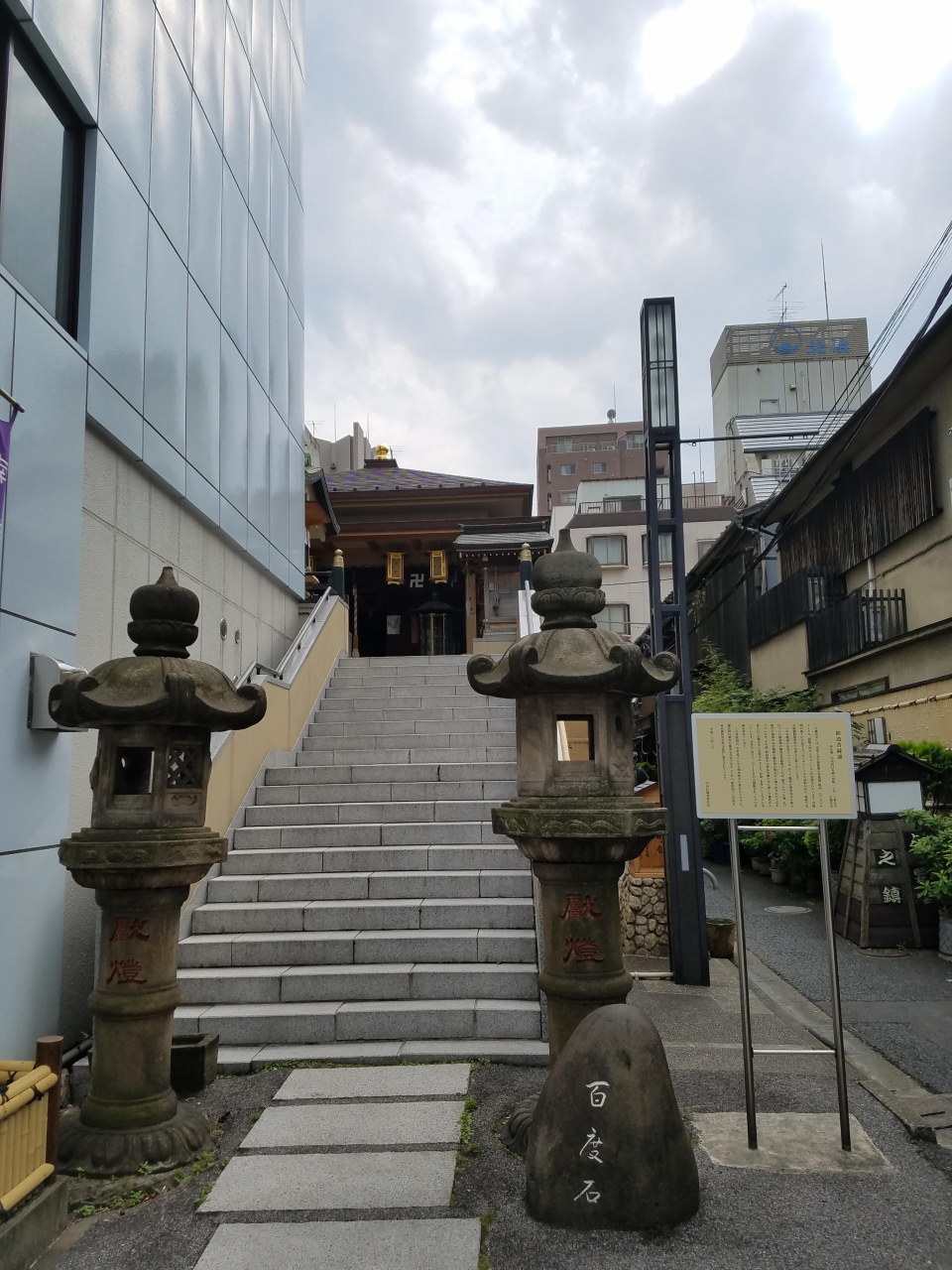 大観音寺は、人形町商店街のからくり櫓近くの路地から階段を登ったところにあります。本堂には鎌倉時代に作られた歴史ある鋳鉄製の菩薩頭が安置されているそうです。ビルに囲まれた空間ながら綺麗に整備されており界隈でも素敵な散策スポットです。