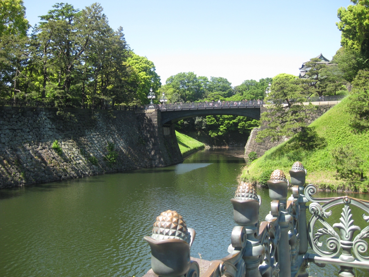 皇居正門から長和殿に向かう途中二重橋濠に架かる鉄橋。旧江戸城の西の丸下乗橋で木造であった、濠が深かったことで途中に橋桁を上下二重にしたことで二重橋と呼ばれるようになったそうです。現在の鉄橋は昭和39年(1964年)東京オリンピックの年に架け替えられた物で正式には正門鉄橋だそうです。島倉千代子の”東京だよおっかさん”の二重橋はどの橋だったのでしょうか。それほど東京を象徴する橋であったのです。一般参賀の時以外は通常は渡ることが出来ません。でもこの橋周辺の景観は素晴らしいです。