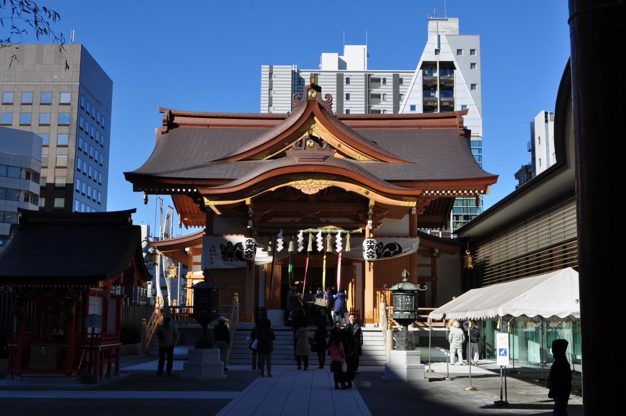 水天宮は日本橋の箱崎ジャンクションの近くにある神社になります。最寄駅は東京メトロ半蔵門線の水天宮前駅で、駅の目の前にあります。歴史はそれほど古くはなく、1818年に創建されたと境内のご由緒が書かれた案内板に書かれていました。ユニークな造りの神社で、コンクリート造りの2階に本殿があり、階段を上って参拝するような形になっていました。年末の訪問ということもあって、多くの参拝客で賑わっていました。とても綺麗な本殿が印象的でした。