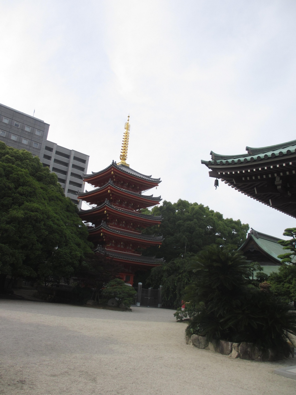 この日は、博多駅周辺を数時間かけて徒歩のみで散策しました。その際、博多には寺町があることを知り寺院巡りもして、東長寺にも行きました。何の予備知識もなく行ったのでこちらの五重塔を見たときには「五重塔がある」という感じで少し驚きました。