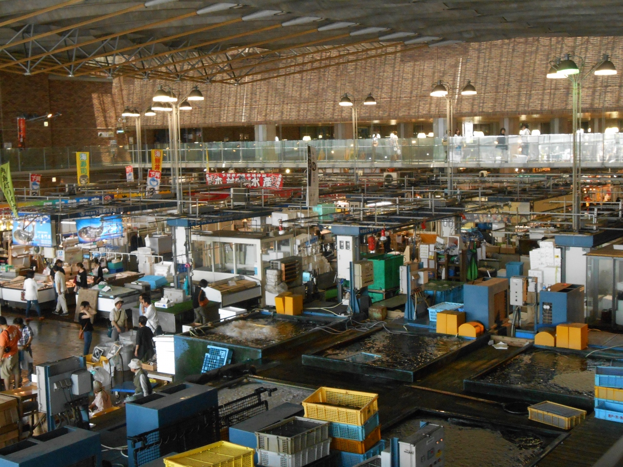 北九州からは橋を渡ってすぐです。休日に行ったので混雑してましたが、市場隣の駐車場に停めることができました。丁度昼ご飯の時間で、弁当、寿司、刺身を中心に販売していたので、寿司を8貫ほど食べました。ネタ、シャリとも大きめで、ネタは新鮮でしたが、寿司としては微妙です。