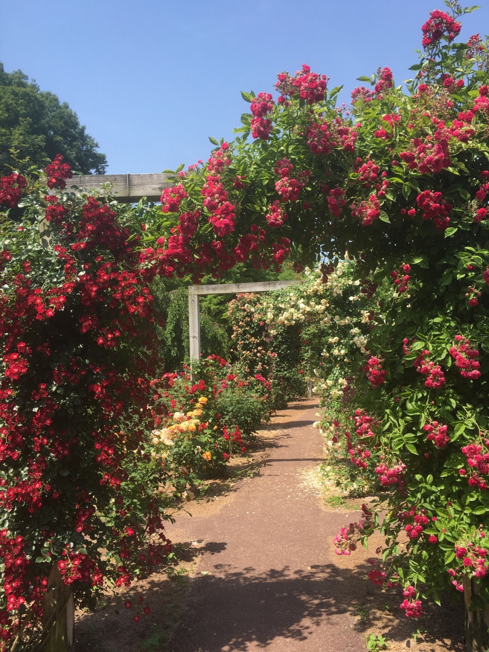 敷地内は本当に広くて、バラ、バラ、バラです。一番見頃の時期に行ったので、とても素敵でした。定番品種だけでなく、最新の品種も見られるのがいいですね。