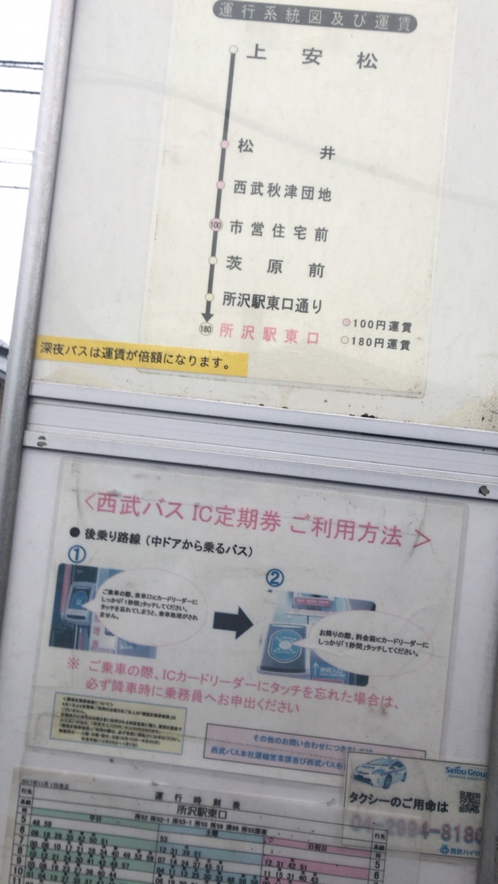 今回は上安松というバス停から所沢駅東口まで利用しました。