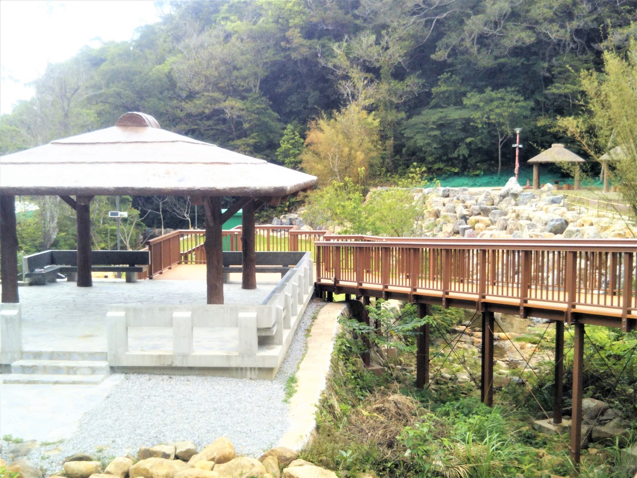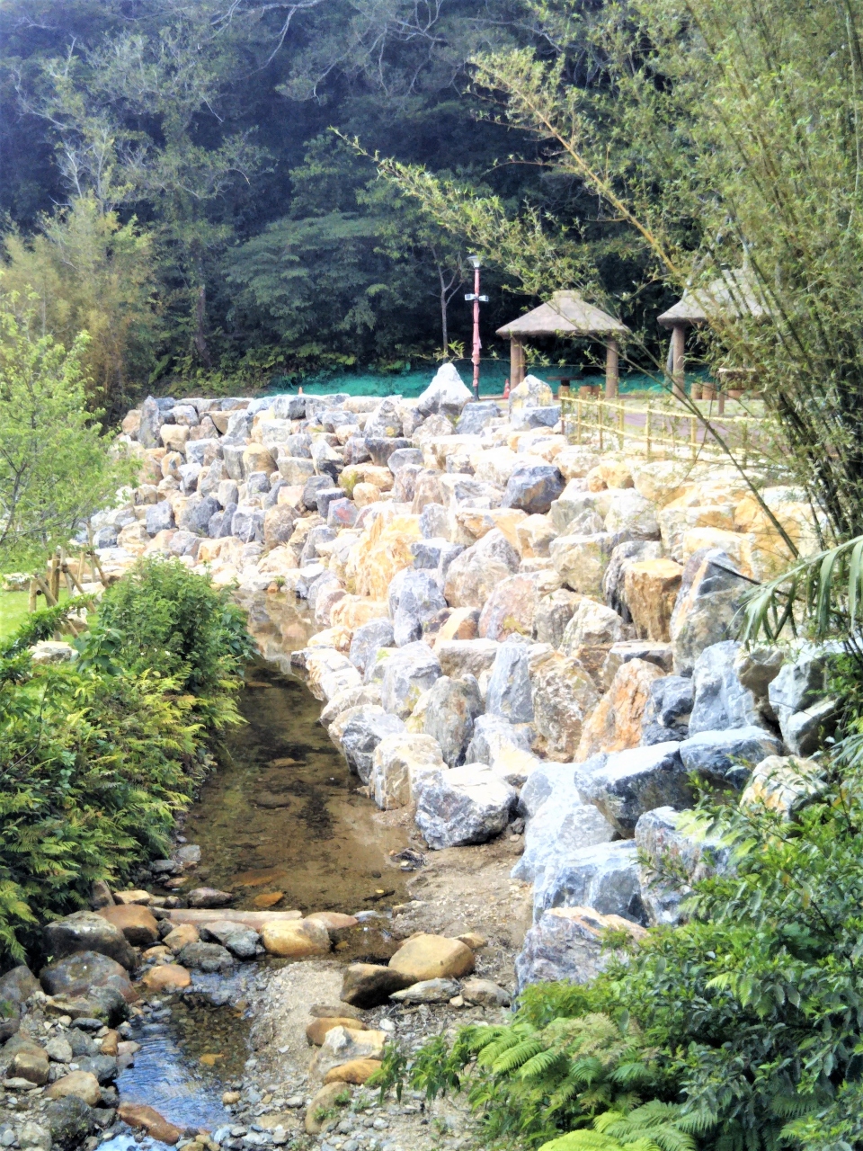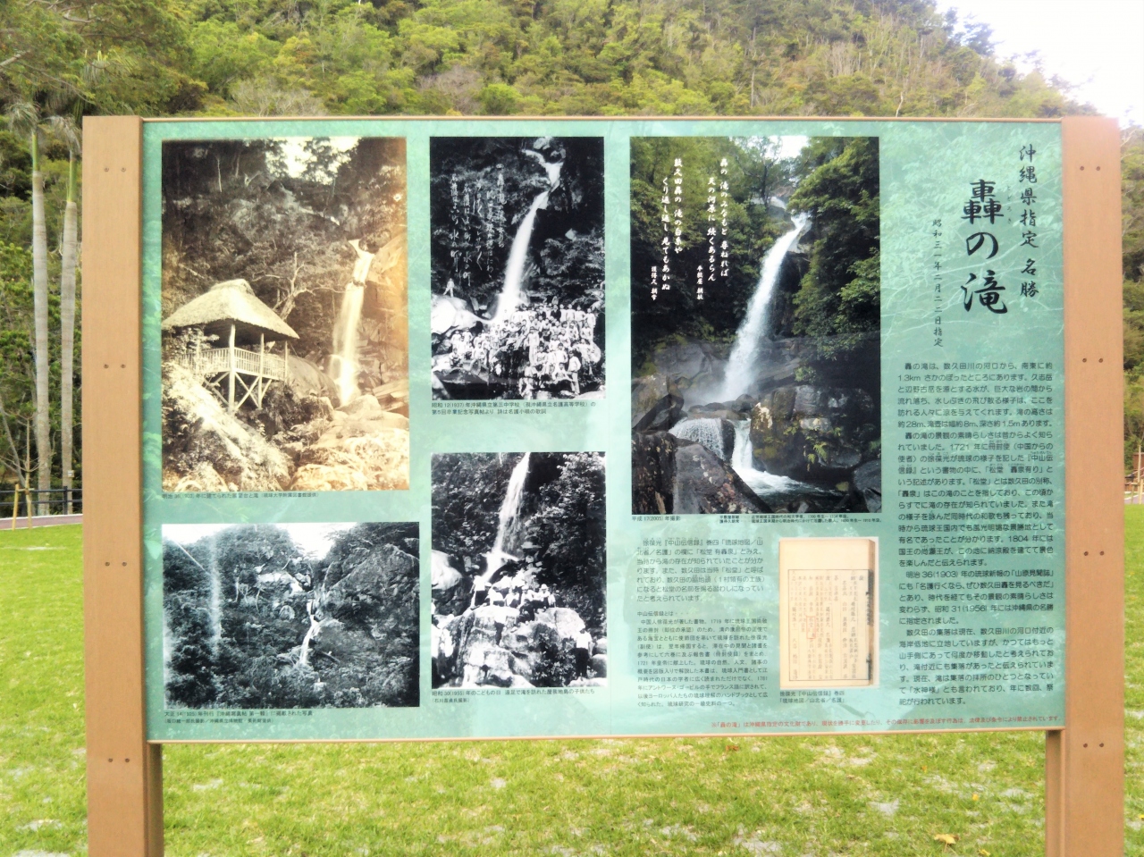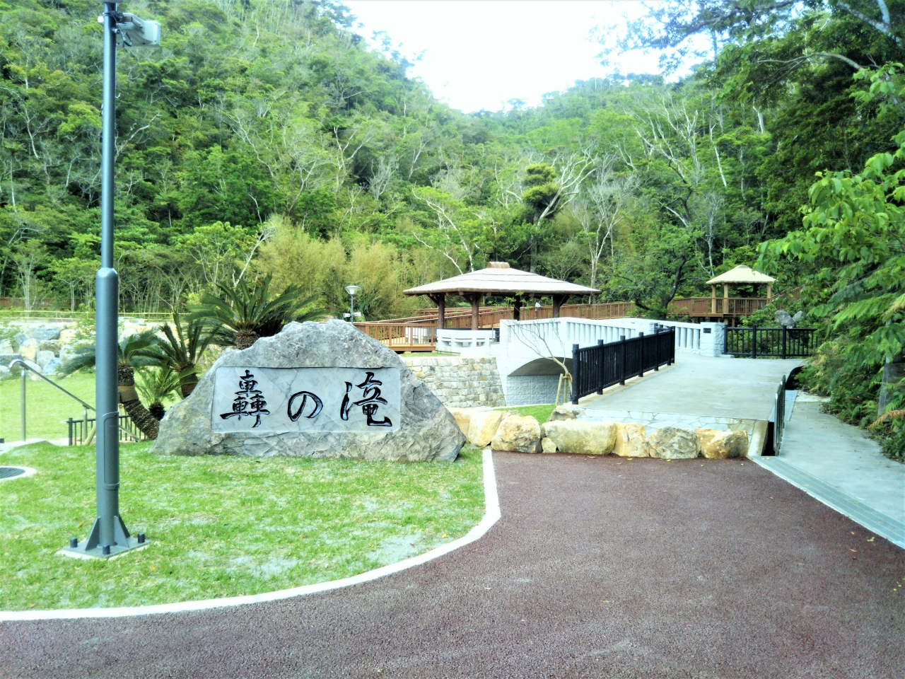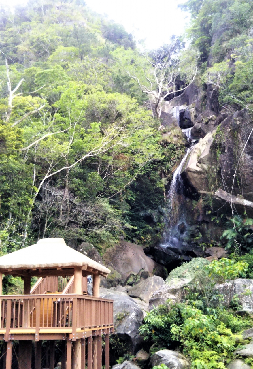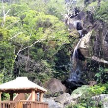 名護市の国道58号線、数久田(すくた)交差点を右折し暫く行くとあります。高さ約28m、滝壷の幅約6m。水量がそれほどでもなく、やや迫力には欠けますが、国道から近く、手軽に行けます。周辺は最近、公園として整備されたようで、駐車場・トイレもあります。