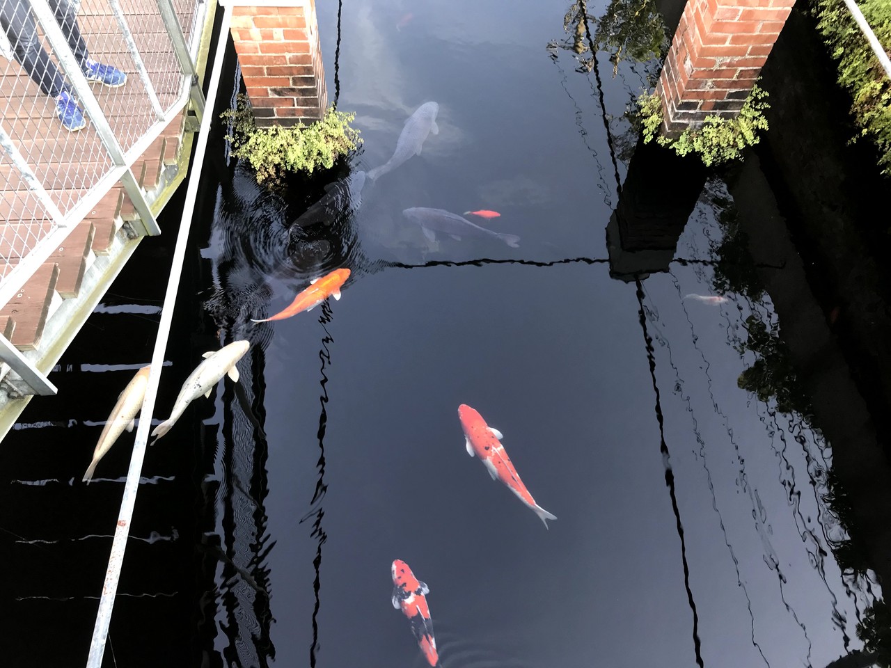 今でもコンコンと綺麗な水が湧き、レンガ造りの貯水槽には大きな鯉が泳いでいます。