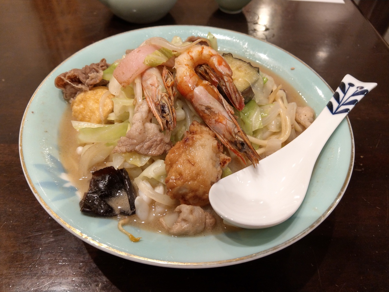 すごく具沢山。海老にお肉にとても美味しく、鶏ガラベースのスープが美味しい!
