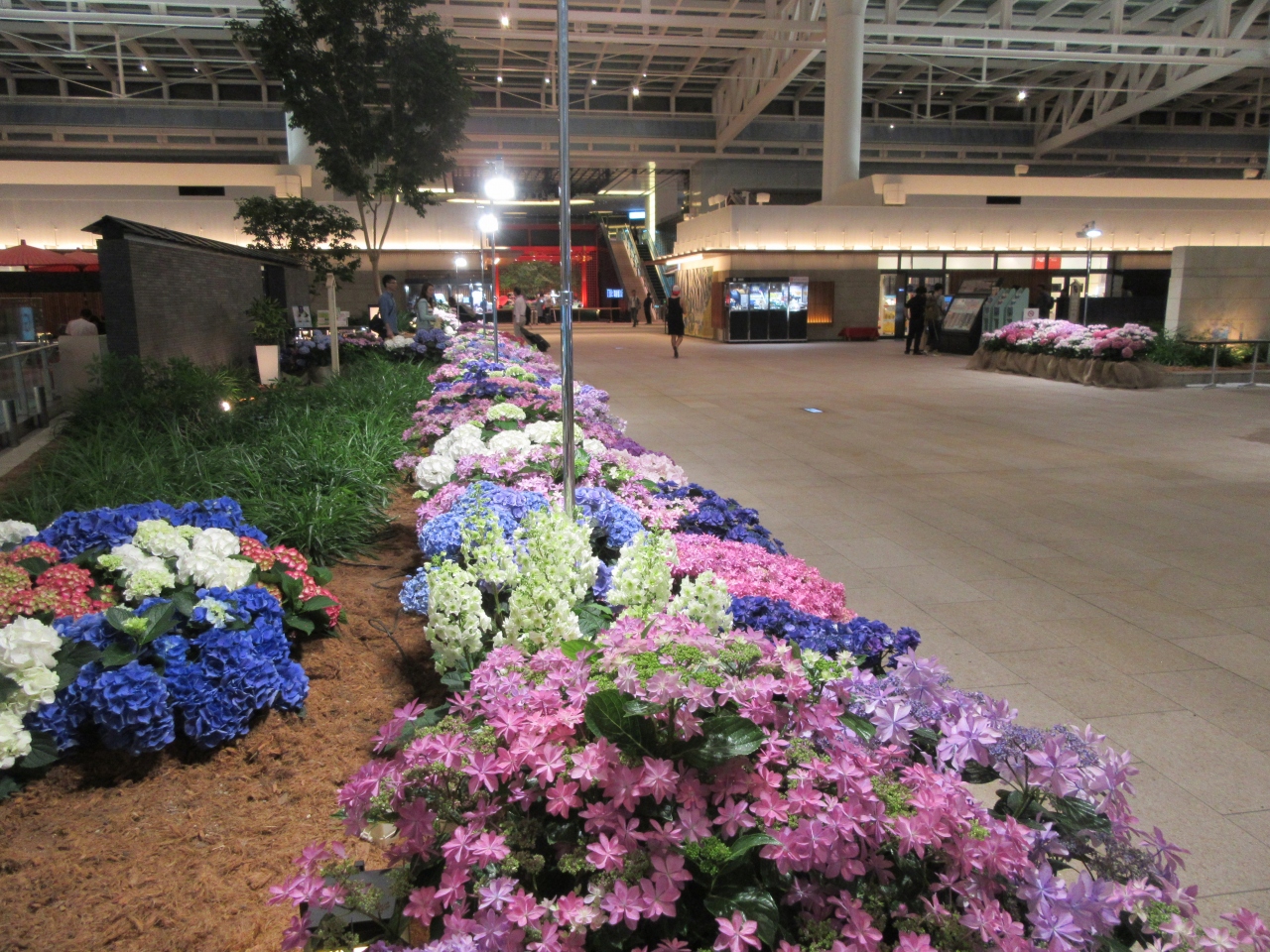昨年3月に行った時は桜の花が飾られ、今回5月末に行った時には色とりどりの種類の違った紫陽花たちが飾られ目を楽しませてくれていました。多くの海外からの観光客も紫陽花の前で記念撮影していました。海外の空港は味気ない場所が多いですが、羽田はただ遊びに行くだけでも楽しい場所だと思います。展望デッキから見た夜景もとてもきれいでした。