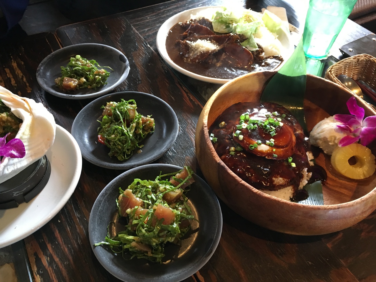 他はポキサラダ、ロコモコ、コナコーヒー等、ハワイらしいメニューを楽しみました。