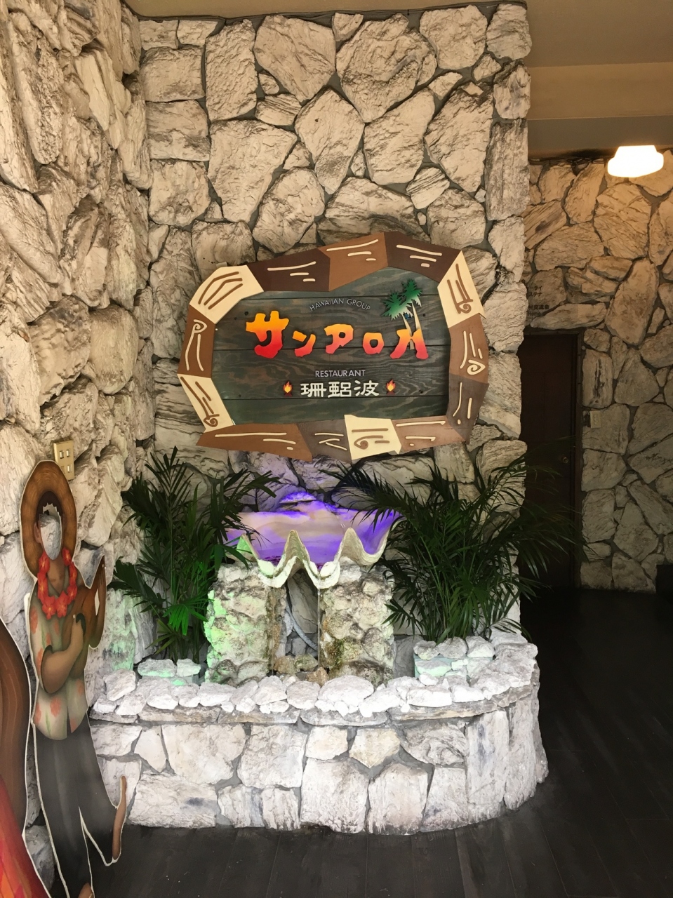 店内は南国風のダークブラウンのインテリア、植物たくさん、店員さんもムームーを着ておりハワイ気分を味わえます。