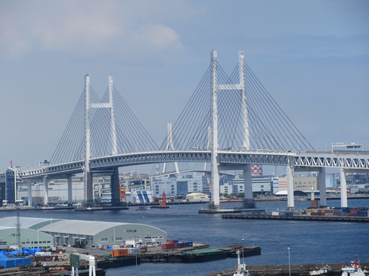 本牧埠頭と大黒埠頭を結ぶ、長さ860m、高さ55mほどの橋です。東京方面から横浜に行く時に度々利用しています。東京湾に架かる美しい橋ですが、高さがあるため、走っていると海の中に吸い込まれそうな気がします。できた当時は、橋に造られた遊歩道を渡ることができましたが、いつの間にか通れなくなってしまい残念です。夜景が美しいことでも知られていて、かつては夜景見物で渋滞ということもありました。東京と横浜をつなぐ橋として、物流のためには欠かすことができない橋になっていると思います。先日、海の見える丘公園から橋を眺めましたが、とても美しく絵になる橋だと感じました。