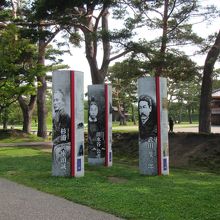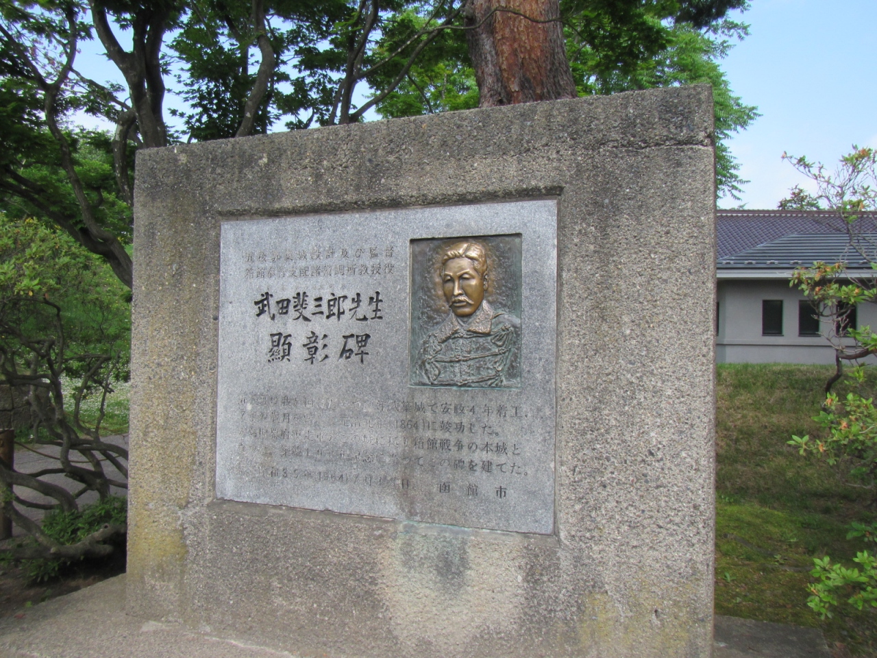 五稜郭の堀を渡り、旧函館奉行所の建物に着く前の順路横にレリーフの碑があります。