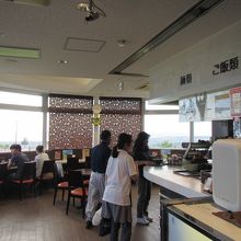下り線では、お土産販売コーナーに食事処が併設していて、定番のうどん・そばのほかに、ラーメン、カレー、かつ丼などがありました。